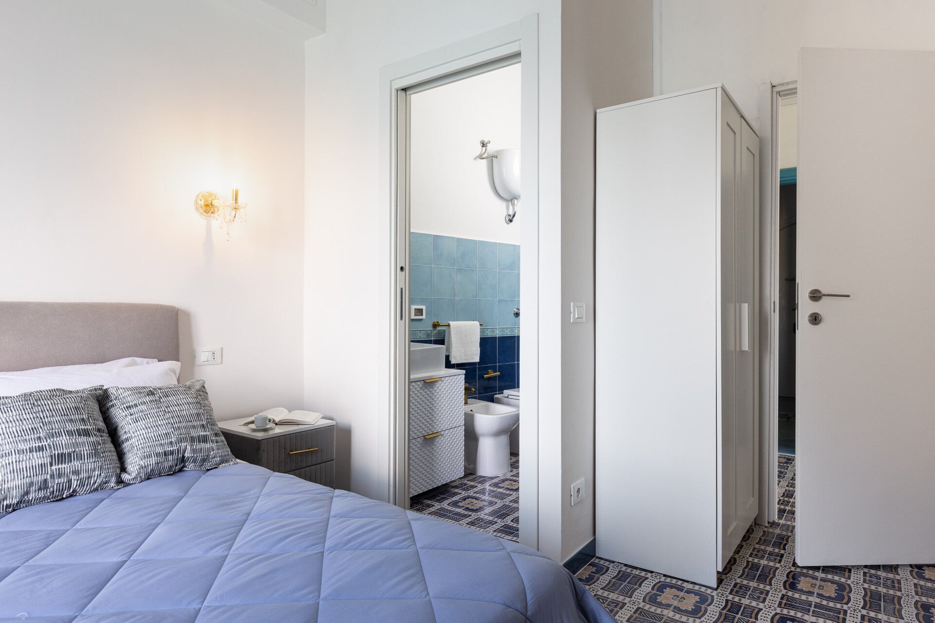 Le sfumature di blu delle camere, richiamano la freschezza della brezza marina e i colori del mare, dotata di tutte le comodità aria condizionata, TV a schermo piatto, wi-fi, frigorifero, macchina del caffè e bollitore.